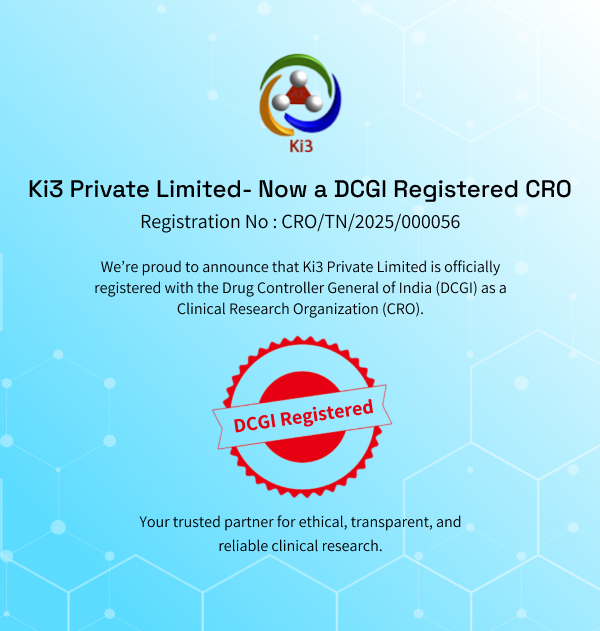 We would like to acknowledge the wonderful services provided by you which helped us to complete the study entitled “A randomized, open-label, multicentered parallel-group clinical study to evaluate the efficacy and safety of Joint Core compared to Jointace DN in osteoarthritis patients”. It is our immense pleasure to acknowledge the fact that Ki3 is very prompt in services and delivery schedules with continuous follow-up in a professional manner. We enjoyed working with you, certainly, we will do new projects in the near future. We sincerely wish you for your future endeavours